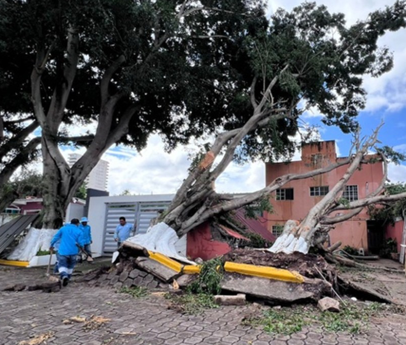En esta zona, por la saturación del terreno y la sobrecarga de los árboles cuyas raíces brotaron, provocando un desprendimiento de la tubería que abastece el agua en el área.